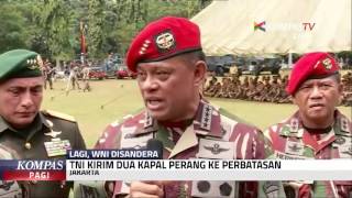 Panglima TNI Jenderal Gatot Nurmantyo mengatakan sudah mengerahkan 2 kapal perang KRI ke wilayah perbatasan dan menyiapkan pasukan untuk ...